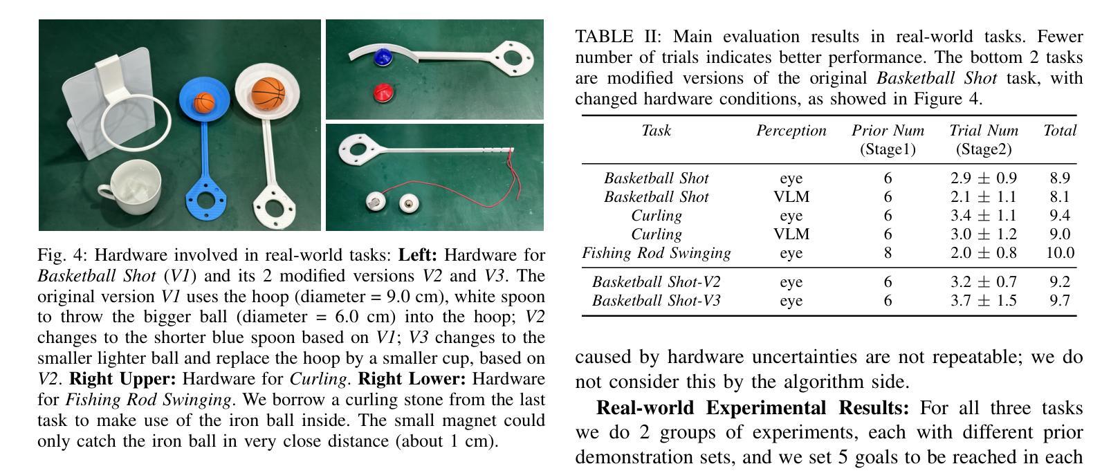 - 该方法能够在少于10次试验内完成如投篮等动态任务,达到人类水平的精度和效率。