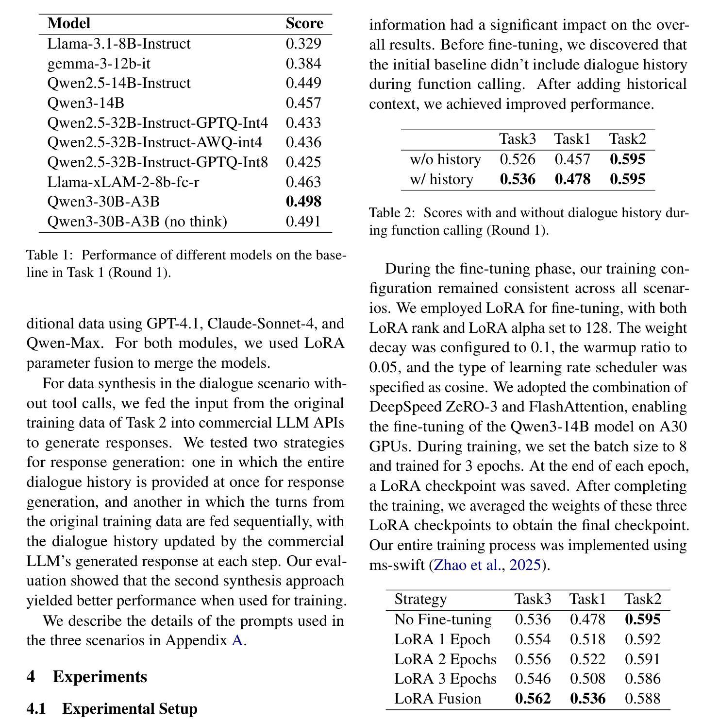 - 三个不同的LoRA适配器分别处理工具调用、带有工具调用结果的响应生成以及没有工具调用结果的响应生成。