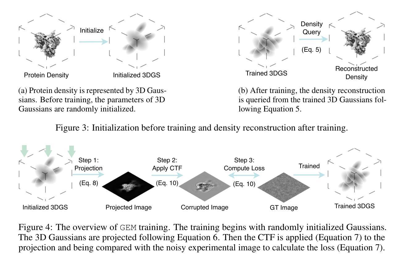 - GEM采用三维高斯拼贴(3DGS)技术,通过紧凑的三维高斯代表蛋白质,减少计算量和内存需求。