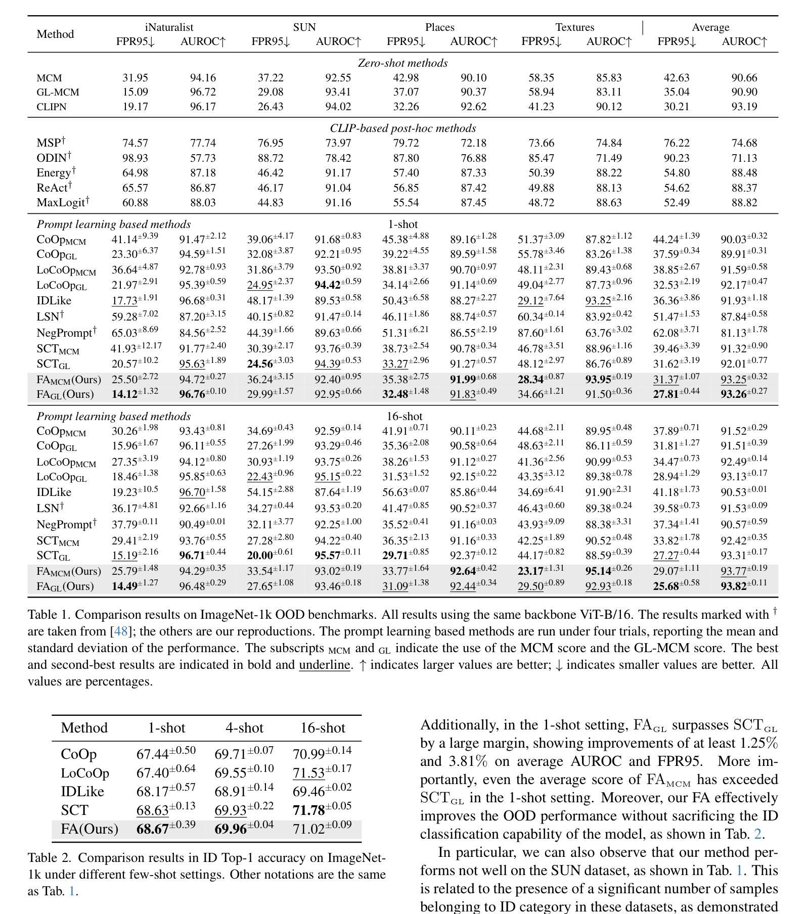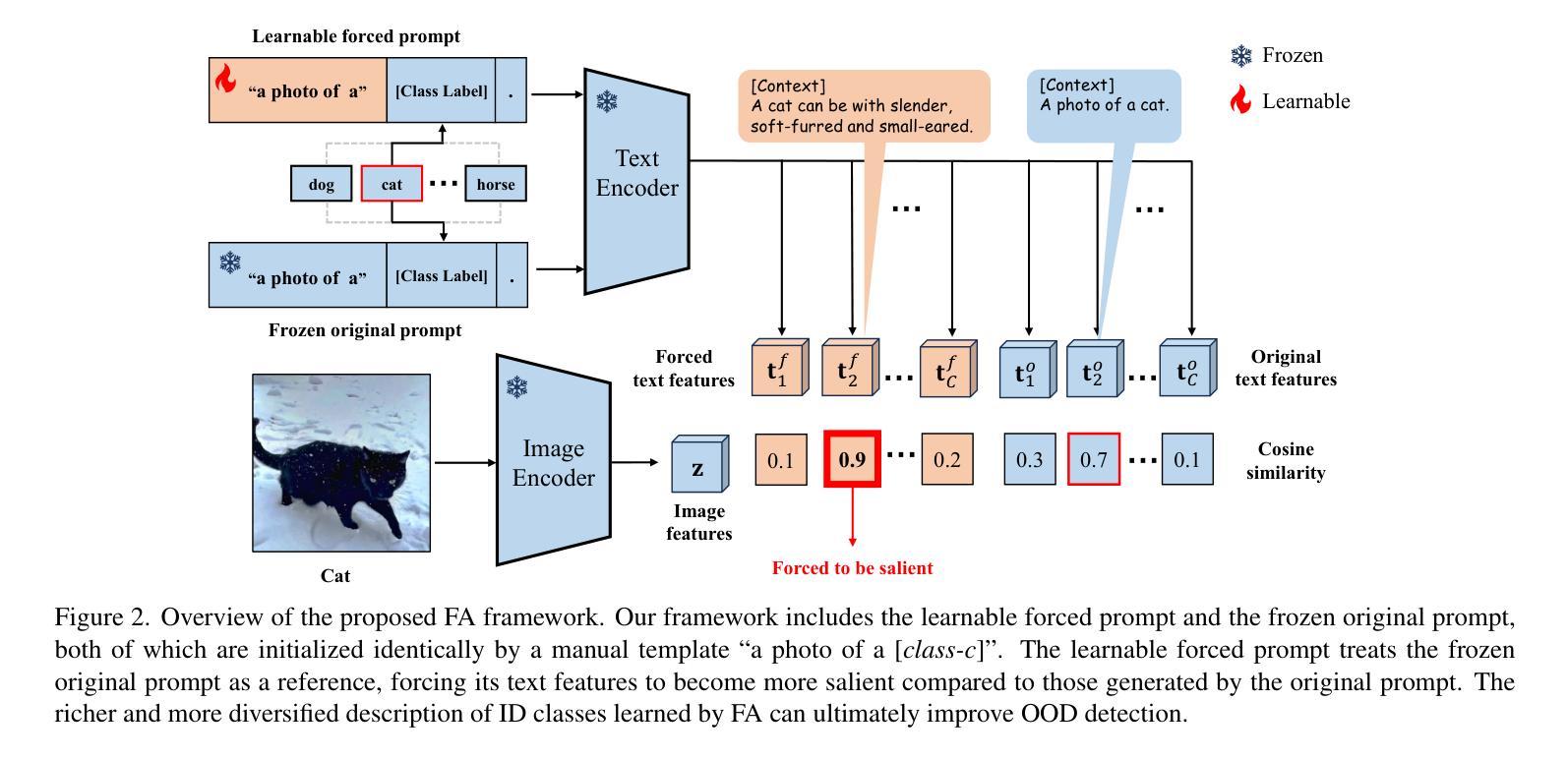 - FA框架利用分布内(ID)知识,通过强制提示学习更多样化和丰富的描述。