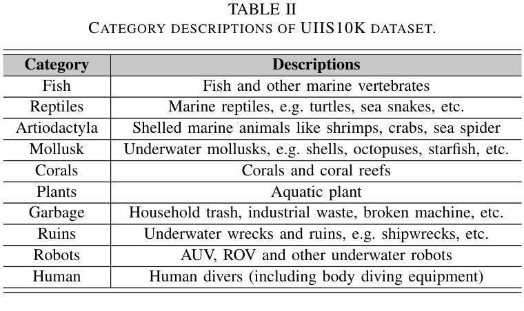 - 提出了大规模水下实例分割数据集UIIS10K,包含10,048张带像素级标注的图像,为水下实例分割研究提供数据支持。