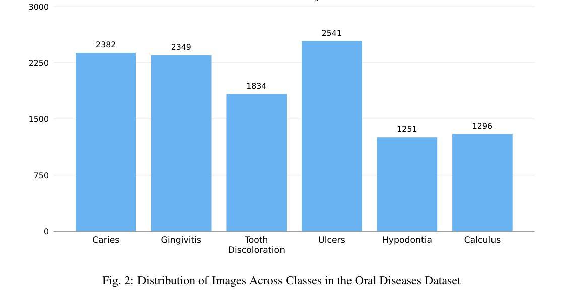研究设计:使用口腔疾病数据集对所选模型进行训练和验证。测量性能指标,包括验证准确率、精确度、召回率和F1分数,特别关注每种架构如何管理不平衡类别。