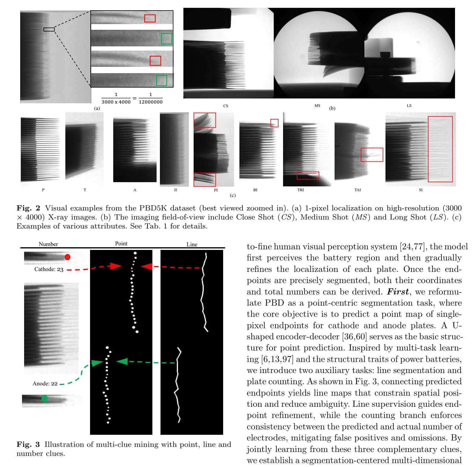 - 动力蓄电池检测(PBD)旨在从工业X射线图像中定位阴极和阳极板的密集端点进行质量检测。