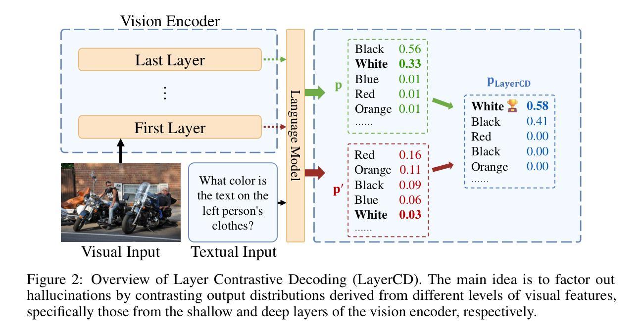 - Layer Contrastive Decoding(LayerCD)方法旨在通过对比不同层次的视觉特征来过滤幻觉。