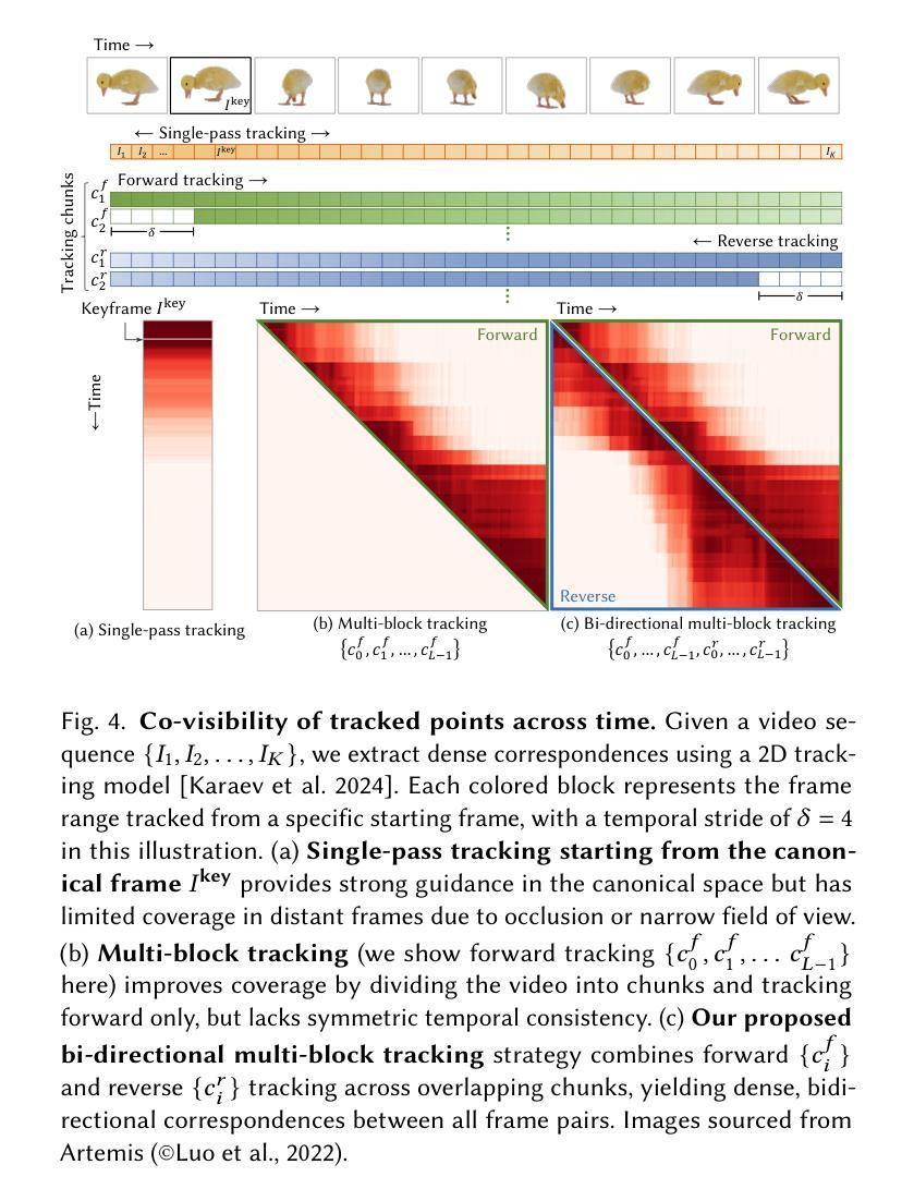 - 通过长期二维点跟踪和优化的方法,实现对可变形三维高斯表示的进一步优化。
