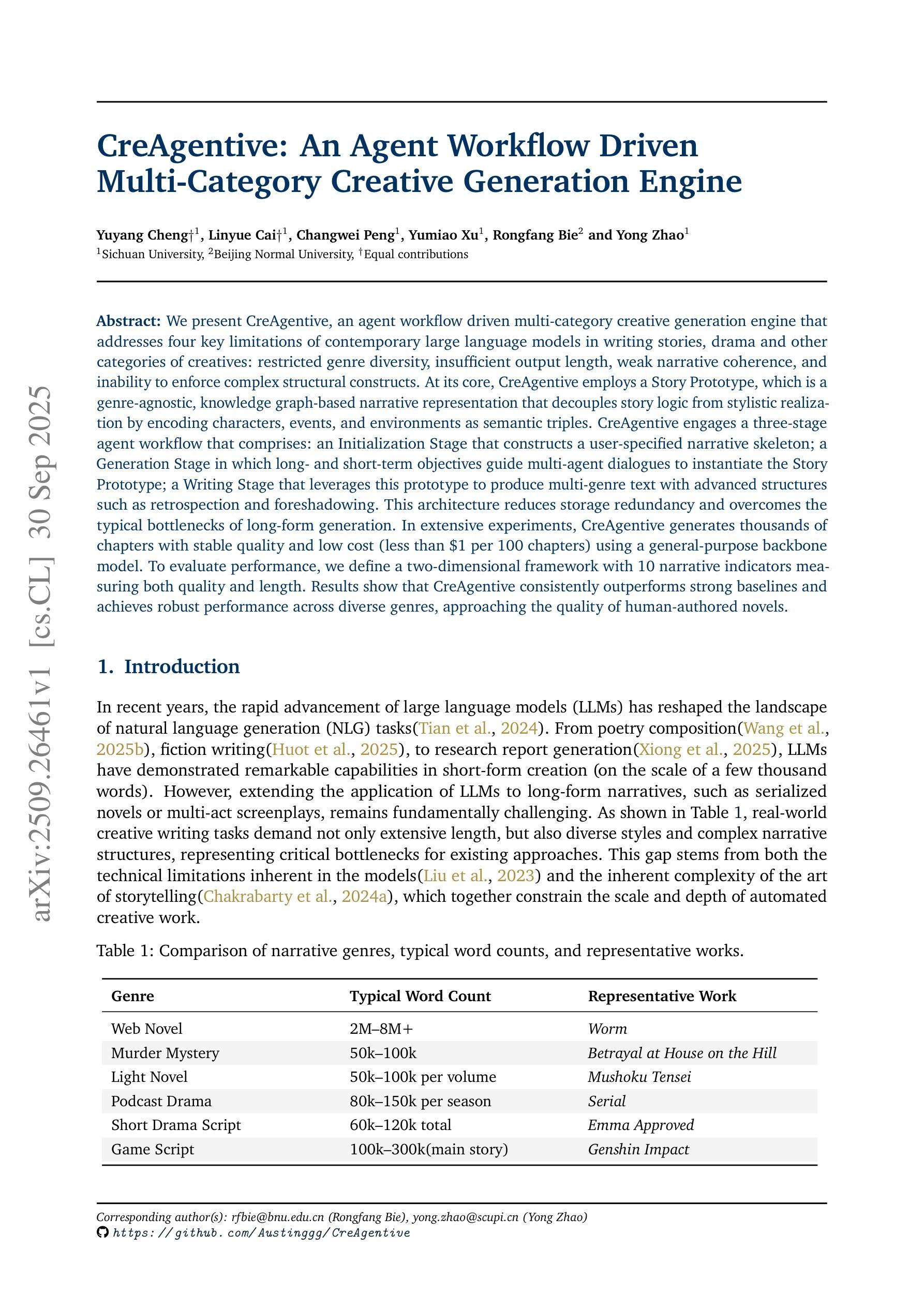 - CrAgentive解决了当代大型语言模型在创意写作领域的四大核心问题:流派多样性、输出长度、叙事连贯性和复杂结构建构能力。