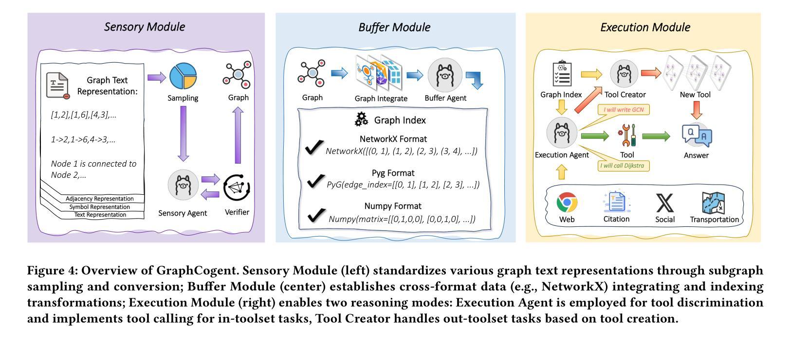 - GraphCogent框架通过模拟人类工作记忆模型来解决这些限制,分解为感官模块、缓冲模块和执行模块三个专门化的认知过程。