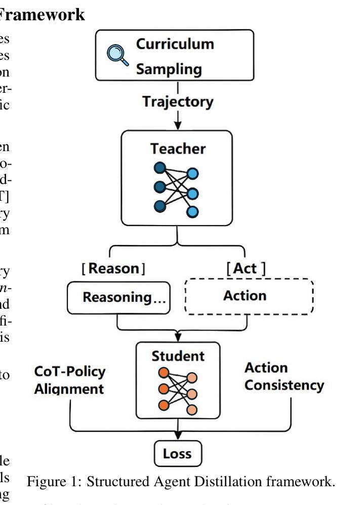 - 提出结构化代理蒸馏框架,能在保持推理的保真度和行动的连贯性的同时,将大型LLM代理压缩成较小的学生模型。