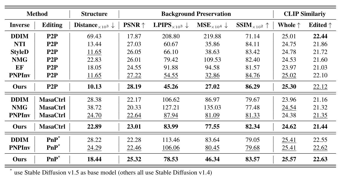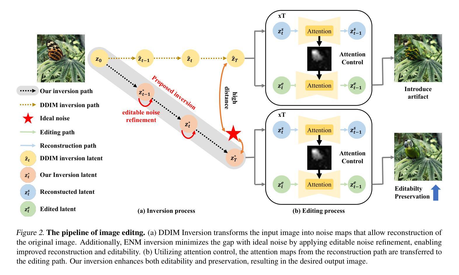 - ENM反转法通过最小化重建和编辑噪声图之间的差异,与所需的编辑保持一致。