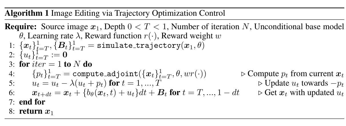- 将编辑过程视为轨迹最优控制问题,利用扩散模型的逆向过程作为可控轨迹。