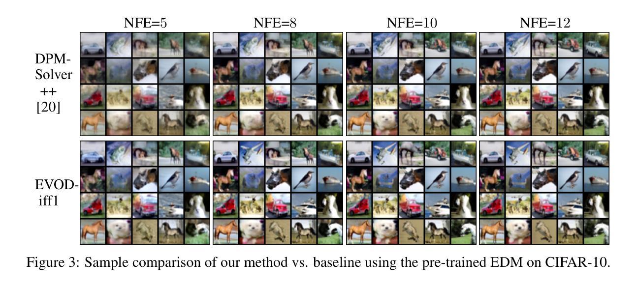 - EVODiff在多个实验上实现了显著的性能提升,如降低重建误差、减少NFE成本,改进文本到图像的生成并减少伪影。