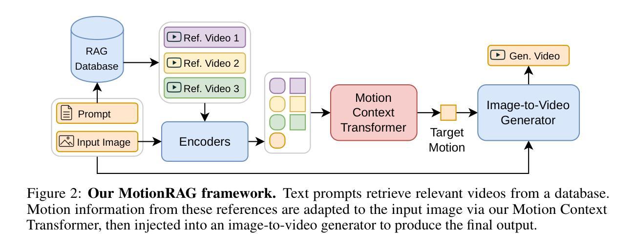 - MotionRAG框架通过适应运动先验提高视频运动真实性。