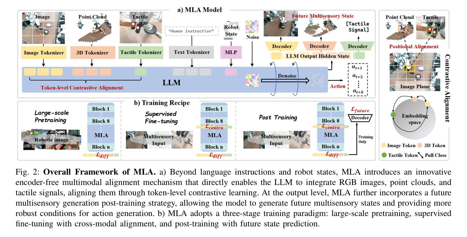 - MLA模型通过跨模态对齐,能够融合2D图像、3D点云和触觉标记。