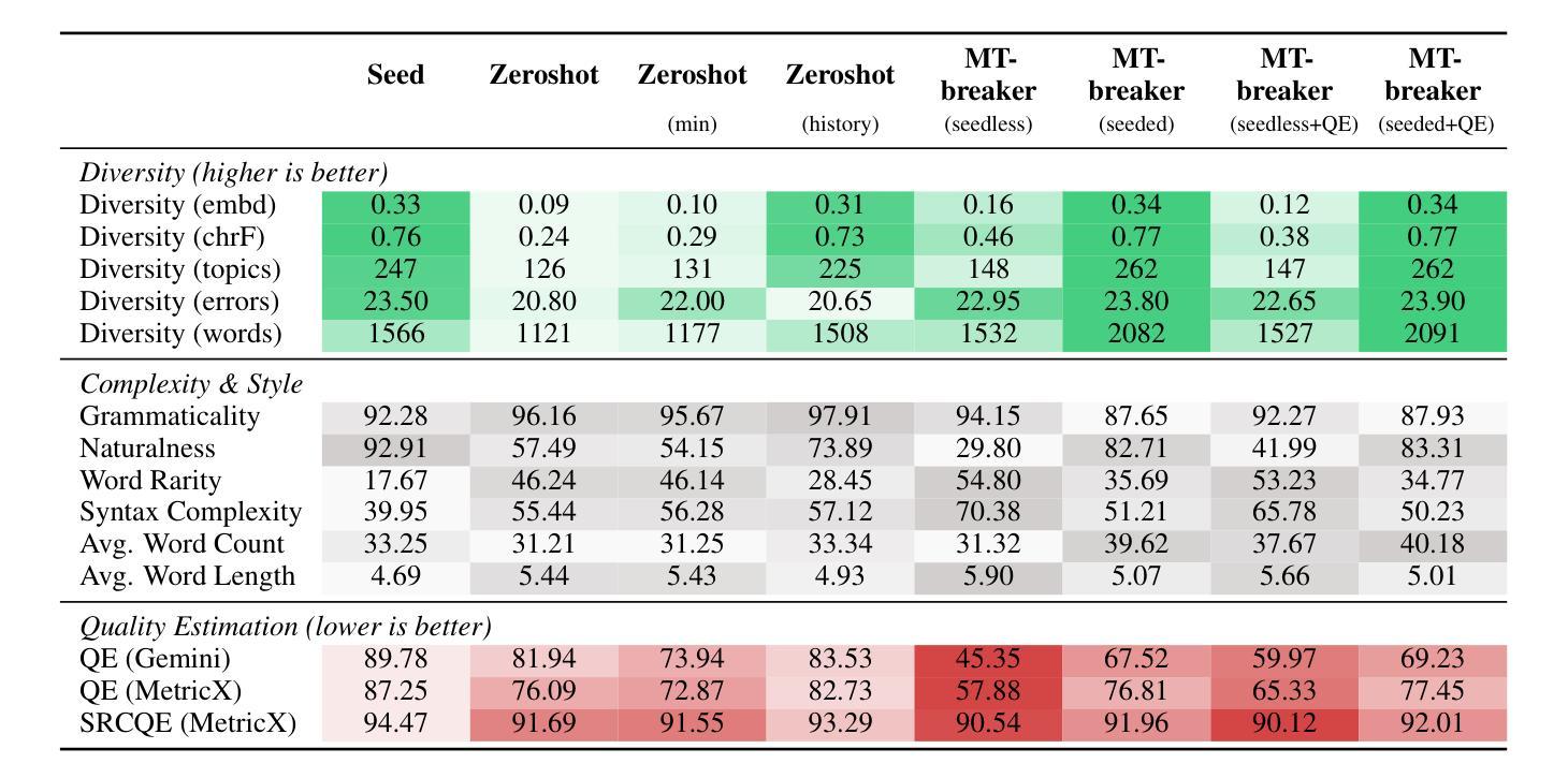 - 提出了一种新的方法MT-breaker,使用大型语言模型迭代改进源文本,增加翻译难度。