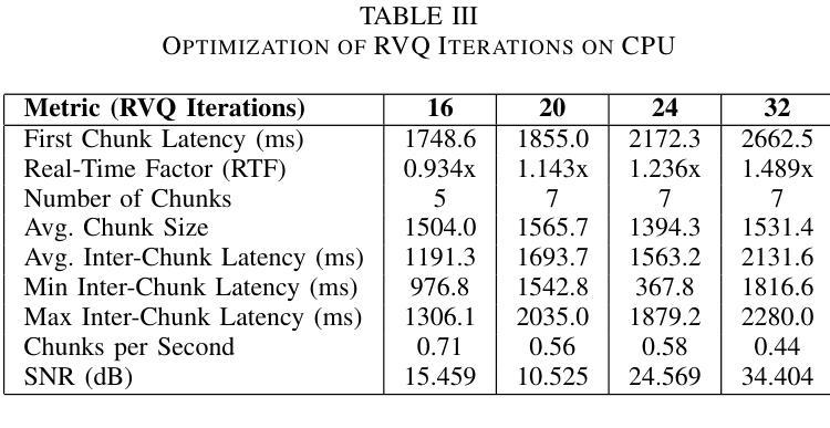 - 优化TTS解码器的RVQ迭代以提升效率,同时减少生成的语音质量损失。
