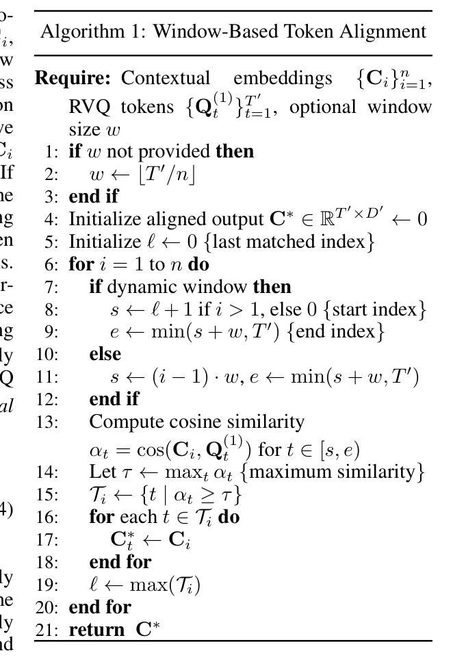 语音分词能够实现对语音的离散表示,并促进语音语言建模。然而,现有的神经编码器主要捕捉低级别的声学特征,忽略了人类语音所固有的语义和上下文线索。尽管最近的努力引入了来自自监督语音模型的语义表示或结合了预训练语言模型的上下文表示,但在对齐和统一语义和上下文表示方面仍存在挑战。我们推出了FuseCodec,它通过强大的跨模态对齐和全局信息监督,统一了声学、语义和上下文表示。我们提出了三种互补的技术:(i)潜在表示融合,直接将语义和上下文特征集成到编码器潜在空间,以实现稳健和统一的表示学习;(ii)全局语义上下文监督,用全局池化和广播的表示来监督离散令牌,以增强时间一致性和跨模态对齐;(iii)临时对齐上下文监督,通过在局部窗口中动态匹配上下文和语音令牌来加强对齐,以实现精细的令牌级监督。我们还推出了FuseCodec-TTS,证明我们的方法适用于零样本语音合成。经验上,FuseCodec在LibriSpeech上达到了最先进的性能,在转录准确性、感知质量、清晰度和说话人相似性方面超越了EnCodec、SpeechTokenizer和DAC。结果突出了上下文和语义引导的分词法在语音分词和下游任务中的有效性。代码和预训练模型可在https://github.com/mubtasimahasan/FuseCodec中获得。