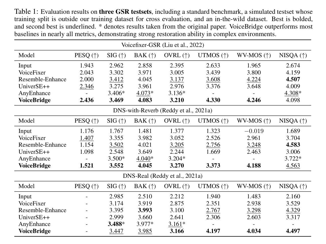 - VoiceBridge在跨领域任务和数据集上的表现经过广泛验证,并展示了其卓越性能。