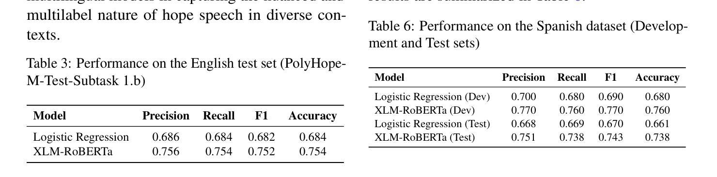 - 提出一种跨多种语言的希望言论机器学习检测方案,包括英语、乌尔都语和西班牙语。