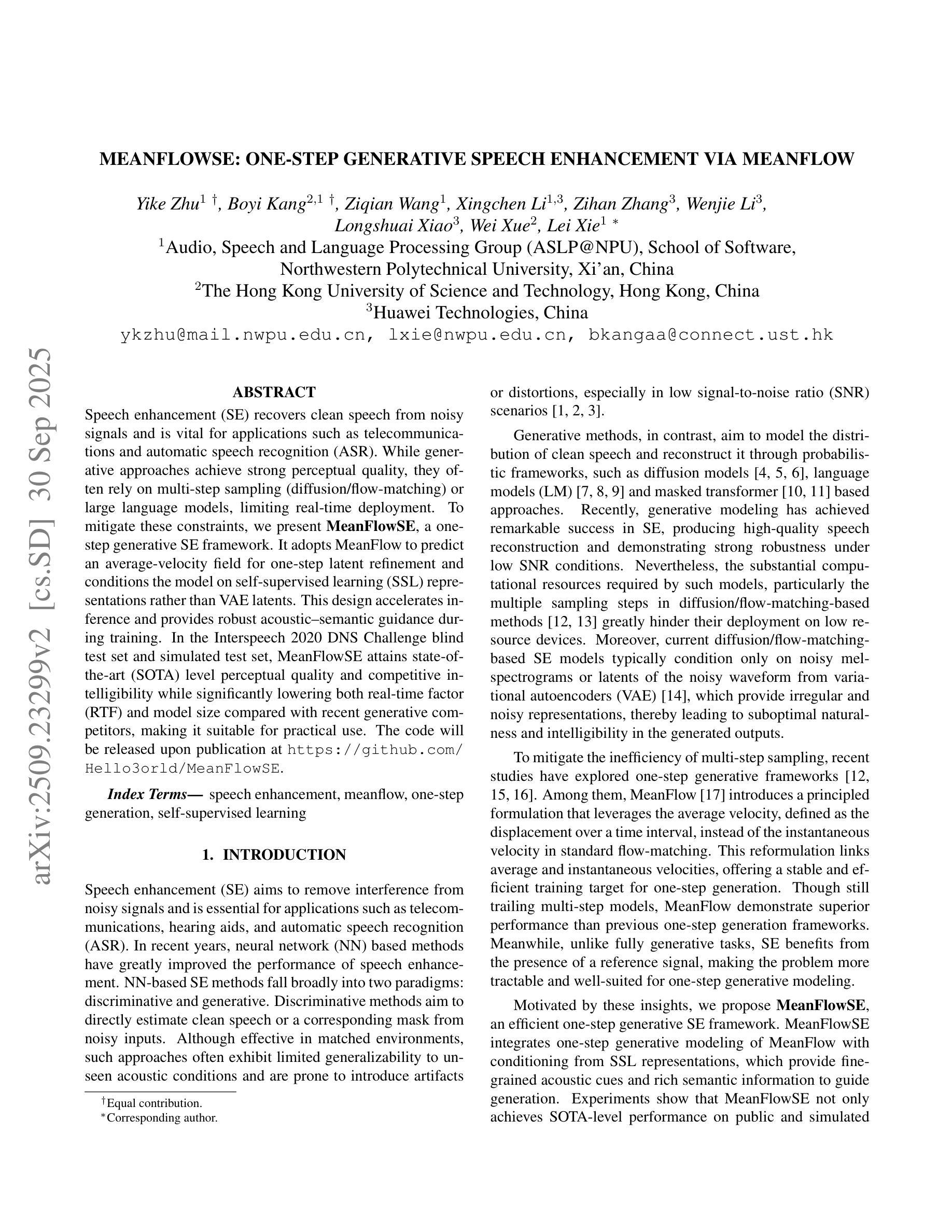 - MeanFlowSE适合实际应用,代码将在相关仓库发布。