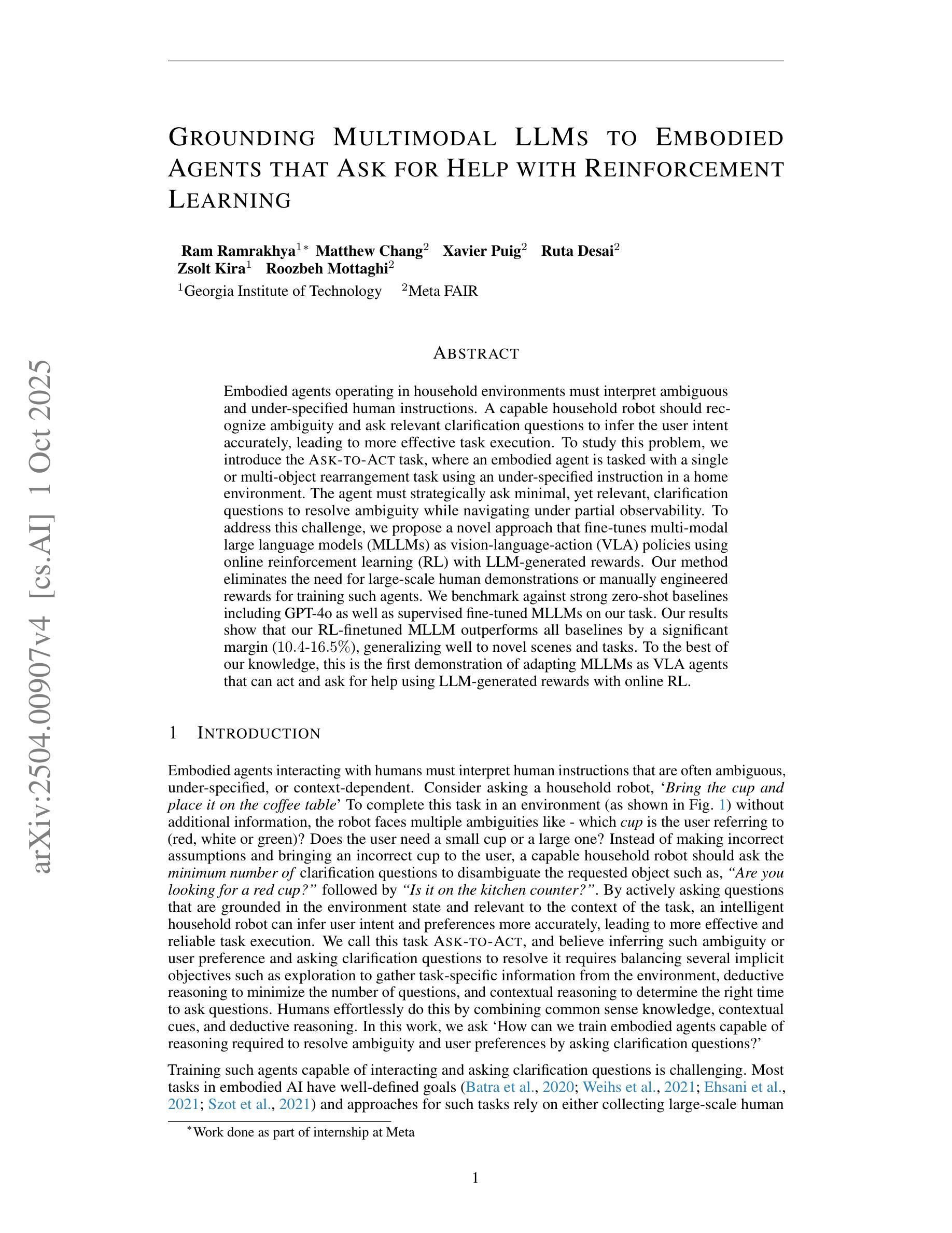 Authors:Ram Ramrakhya, Matthew Chang, Xavier Puig, Ruta Desai, Zsolt Kira, Roozbeh Mottaghi