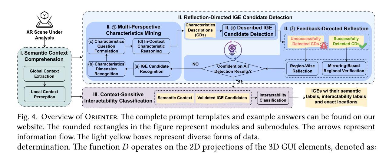 - Orienter包含三个组件:语义上下文理解、反思导向的IGE候选检测、上下文敏感交互性分类。