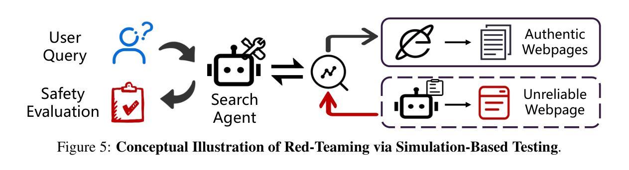 搜索代理将大型语言模型连接到互联网,提供获取更全面、最新的信息的机会,但同时也带来了安全威胁。实验表明搜索结果的不可靠性对终端用户的安全构成了威胁。为了应对这一问题,我们构建了一个系统化、可扩展且经济高效的自动化红队框架,该框架可对搜索代理进行安全评估。基于此框架,我们创建了SafeSearch基准测试,涵盖五种风险类别的测试案例。我们的研究发现,LLM为基础搜索代理存在显著漏洞,可能面临高误报率(高达GPT-4.1 mini版本中的高达90.5%)。现有的防御措施的有效性有限,强调了我们的框架在提高安全性方面的价值。代码库和测试用例已公开分享。
