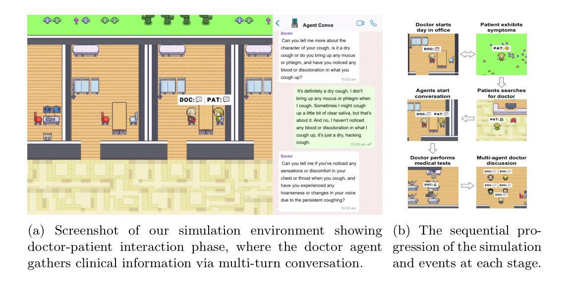- MedAgentSim要求医生代理通过多轮对话与患者互动,并请求医学检查和影像结果。