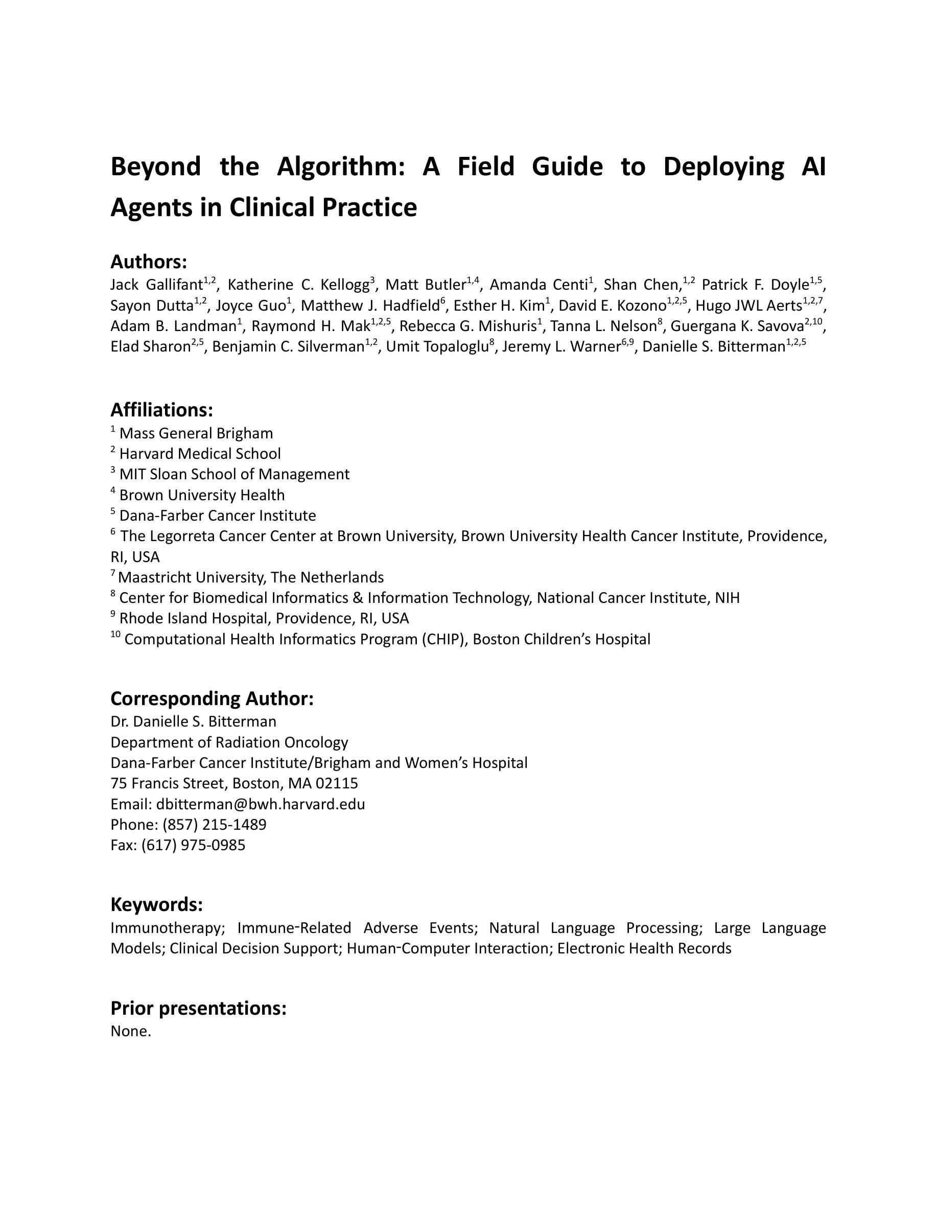 Authors:Jack Gallifant, Katherine C. Kellogg, Matt Butler, Amanda Centi, Shan Chen, Patrick F. Doyle, Sayon Dutta, Joyce Guo, Matthew J. Hadfield, Esther H. Kim, David E. Kozono, Hugo JWL Aerts, Adam B. Landman, Raymond H. Mak, Rebecca G. Mishuris, Tanna L. Nelson, Guergana K. Savova, Elad Sharon, Benjamin C. Silverman, Umit Topaloglu, Jeremy L. Warner, Danielle S. Bitterman