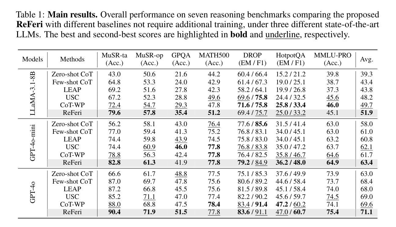 - 实验表明,ReFeri框架显著提高了LLMs的准确性,平均提高了4.8%。