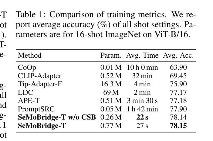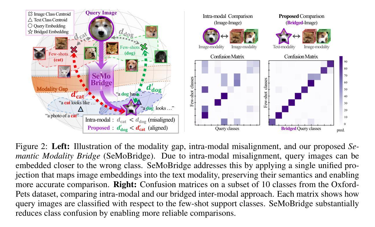 - SeMoBridge方法解决了CLIP模型在少样本分类中的模态间不对齐问题。