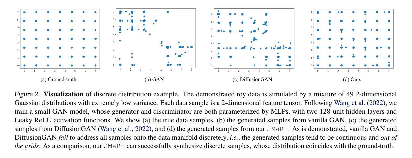 生成对抗网络(GANs)在处理高度多样化的数据时通常面临挑战,这些数据的底层流形是复杂的。在这项工作中,我们重新审视了GANs的数学基础,并从理论上揭示了GAN训练的原始对抗损失不足以解决“生成数据流形中实际数据流形之外的具有正勒贝格测度的子集”的问题。相反,我们发现分数匹配为解决此问题提供了一个有前途的解决方案,因为它能够持续地将生成的数据点推向实际数据流形。因此,我们提出通过分数匹配规则(SMaRt)改进GAN的优化。关于经验证据,我们首先设计了一个简单的例子来展示借助真实分数函数训练GAN可以帮助更准确地重建真实数据分布,然后证实我们的方法可以在具有预训练扩散模型的现实数据集上持续提高各种最新GAN的合成性能,这些扩散模型作为近似分数函数。例如,在ImageNet 64x64数据集上训练Aurora时,我们将FID从8.87改进到7.11,与一步一致性模型的性能相当。代码可在https://github.com/thuxmf/SMaRt找到。