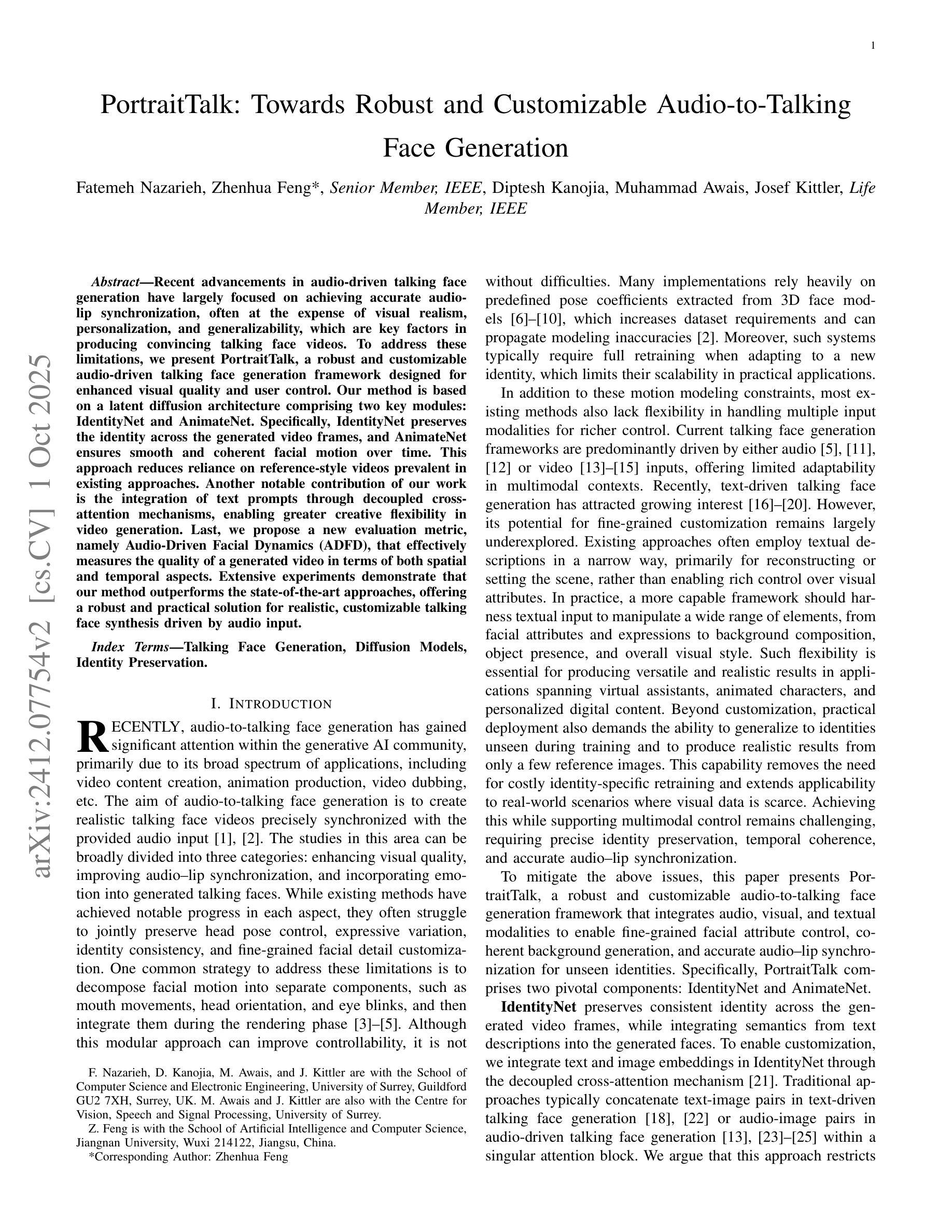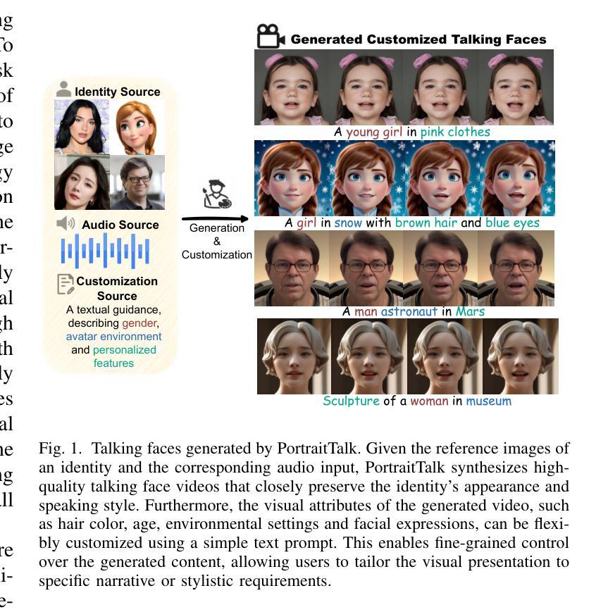 - PortraitTalk是一个音频驱动的说话面孔生成框架,旨在解决数字通信中的挑战。