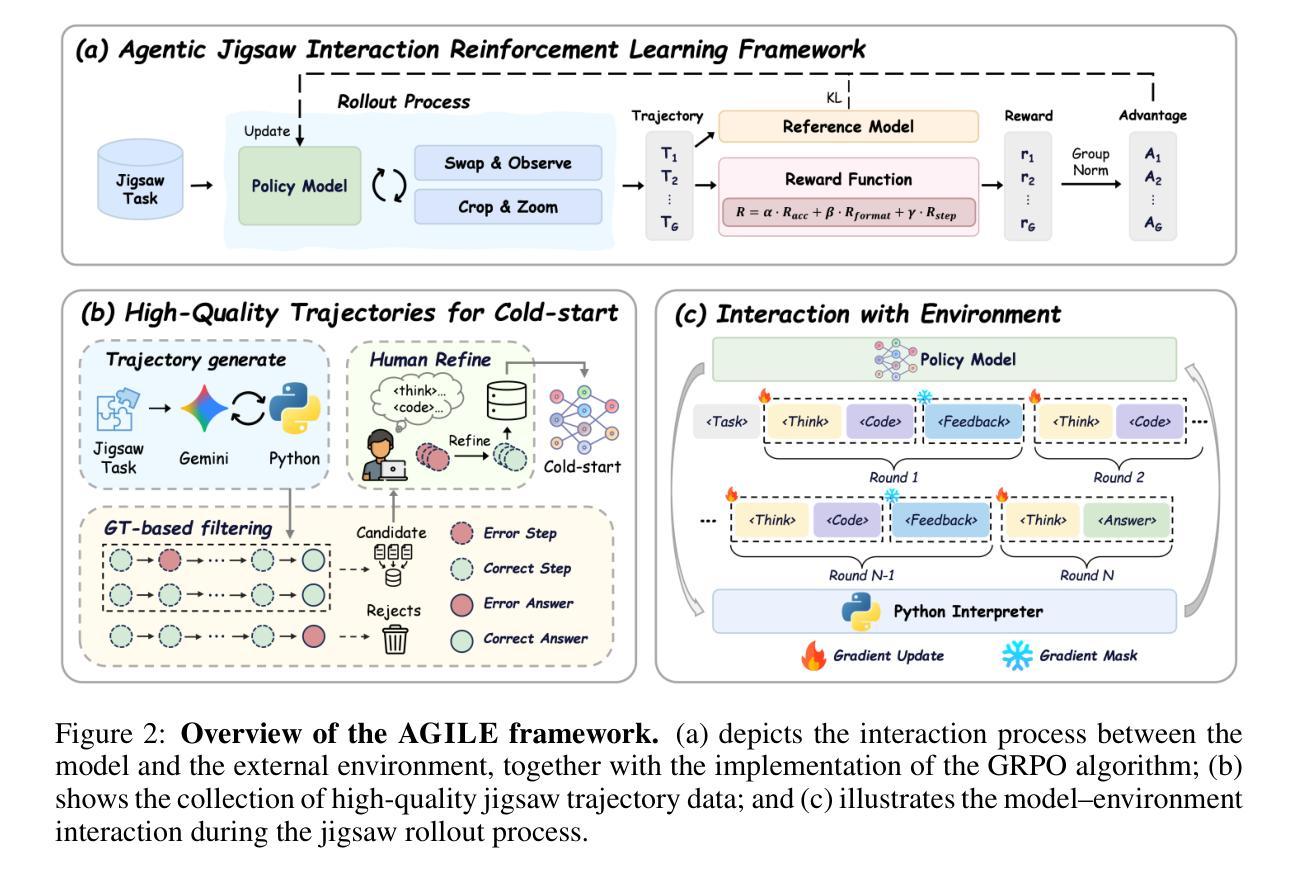 - AGILE将拼图任务转化为一个互动过程,模型逐步与环境互动,逐步改进感知和推理能力。