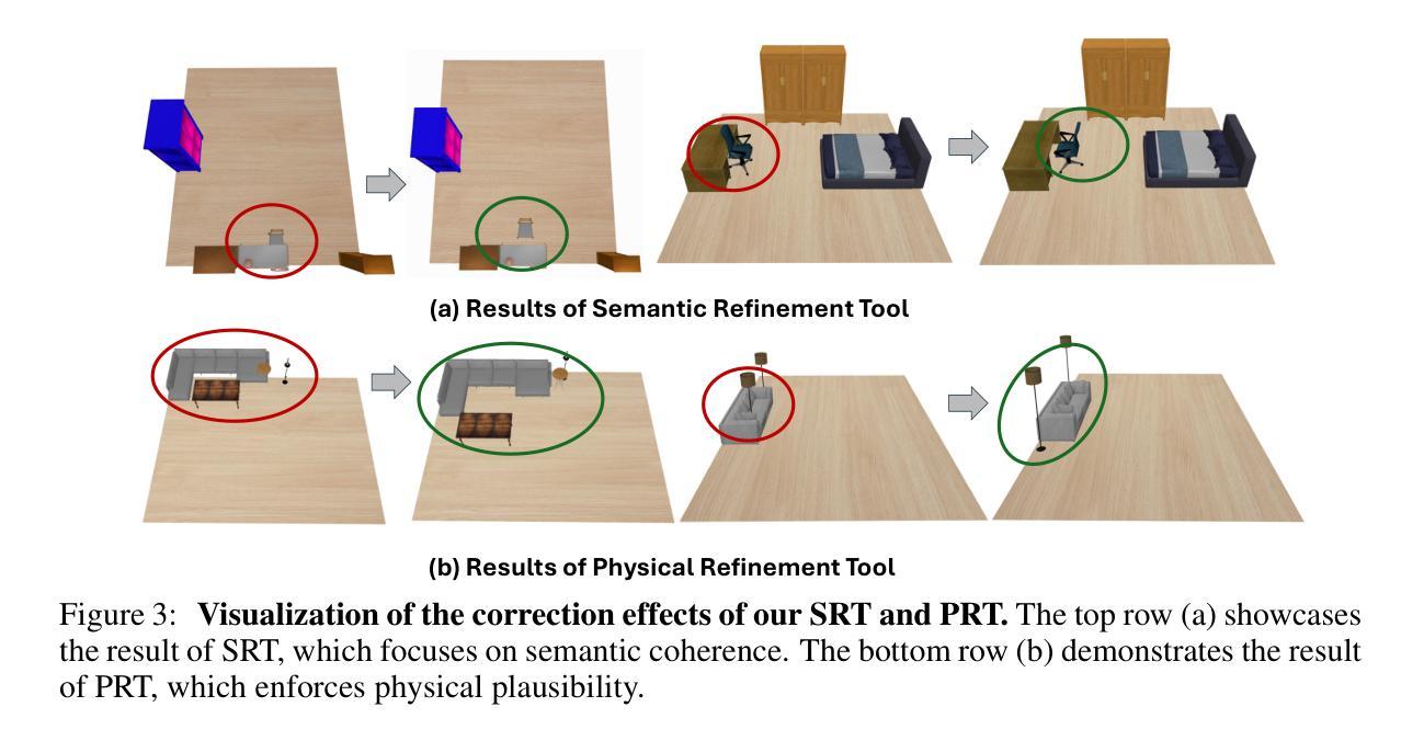 - DisCo-Layout包括独立的修正(语义修正工具SRT和物理修正工具PRT)和协作的修正(多智能体框架)。