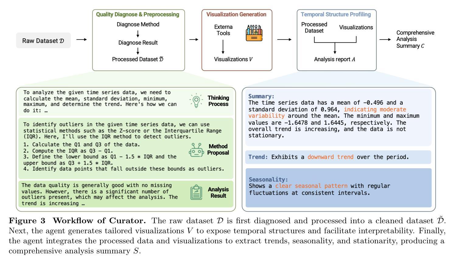 - TSci包含四个专门代理:Curator、Planner、Forecaster和Reporter,分别负责数据诊断、模型选择、模型拟合验证和报告生成。