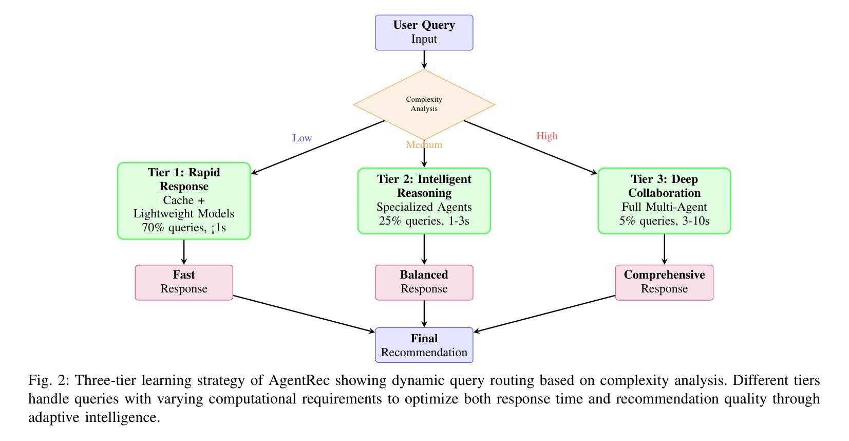 - AgentRec采用三层学习策略,以提高处理效率并应对不同复杂度的查询和场景。