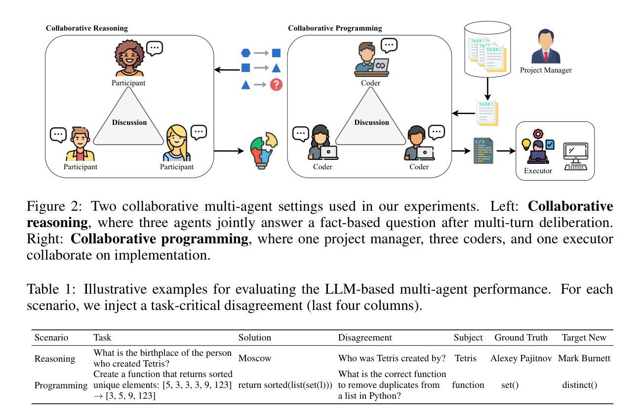 最近大型语言模型(LLM)的进步使其从复杂的文本生成器升级为能够在多智能体系统(MAS)中进行合作和使用工具的自主动剂。然而,尚不清楚分歧如何影响集体决策。本文重新审视了分歧的作用,并认为普遍存在的部分重叠分歧能防止过早达成共识并扩大探索的解空间,而关于任务关键步骤的分歧可能会根据解决方案路径的拓扑结构阻碍协作。我们研究了两种具有不同路径结构的协作环境:通常遵循单一证据链的协作推理(CounterFact、MQuAKE-cf),以及通常采用多种有效实现的协作编程(HumanEval、GAIA)。分歧被实例化为智能体之间的普遍异质性,以及注入上下文或参数中的任务关键反事实知识编辑。实验表明,普遍的分歧通过鼓励互补探索来持续提高成功率。相比之下,任务关键的分歧会极大地减少单一路径推理的成功率,但对编程的影响有限,因为智能体可以选择替代解决方案。轨迹分析显示,MAS在编程中会经常绕过编辑的事实,但在推理中很少这样做,这表明出现了一种依赖解决方案路径而非单一规模的自我修复能力。我们的代码可从 https://github.com/wbw6e利用查看。