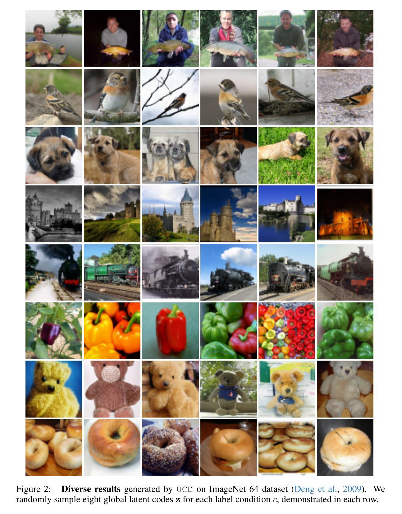 - UCD在性能上取得了显著的提升,并在ImageNet-64数据集上实现了低FID值。