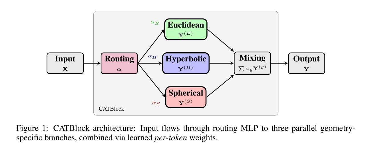 - 引入的曲率自适应Transformer(CAT)架构能通过学习动态路由机制来适应不同的几何结构。