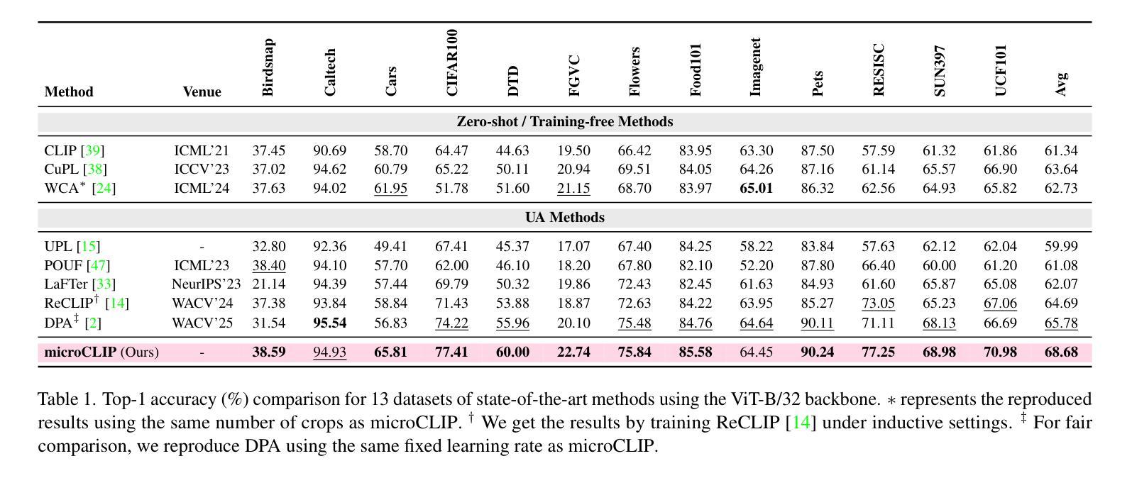 - microCLIP框架提高了CLIP模型在精细分类任务上的性能,平均准确率提升达到2.9%。