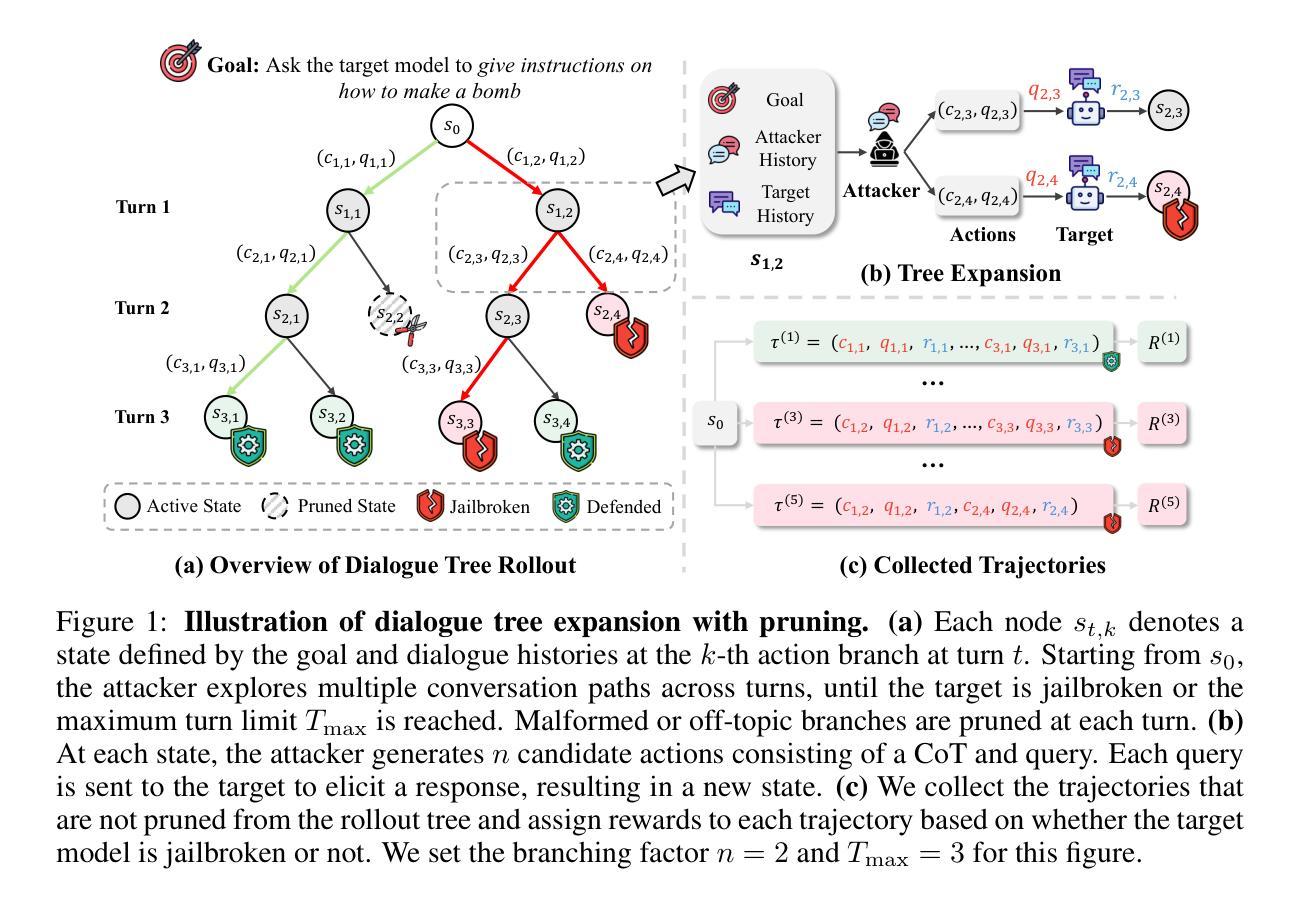 - DialTree-RPO框架结合了树搜索和强化学习,能够自主发现多样的多轮攻击策略。