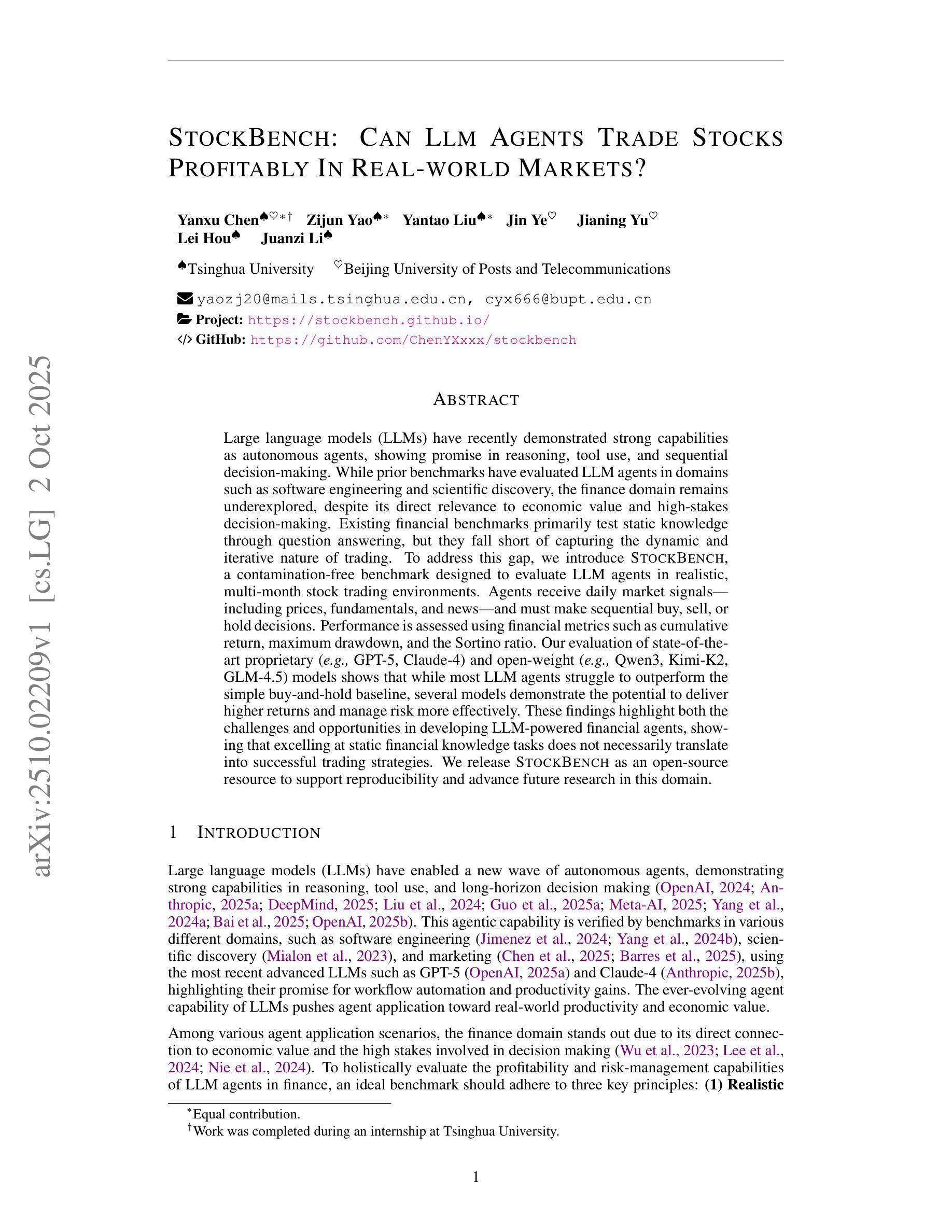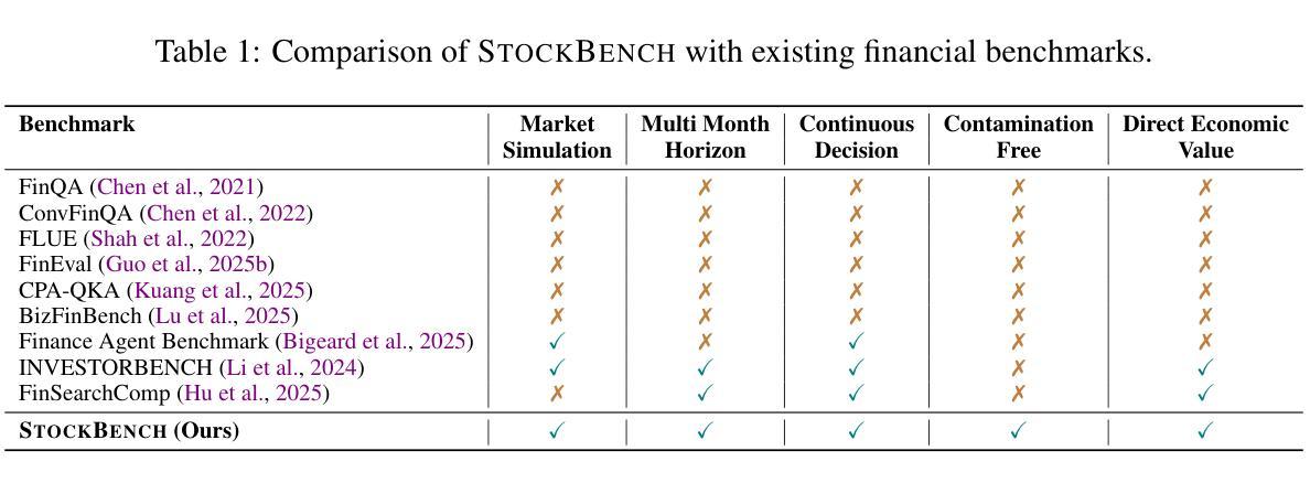 - 推出StockBench基准测试,评估LLM在真实股票交易环境中的性能。
