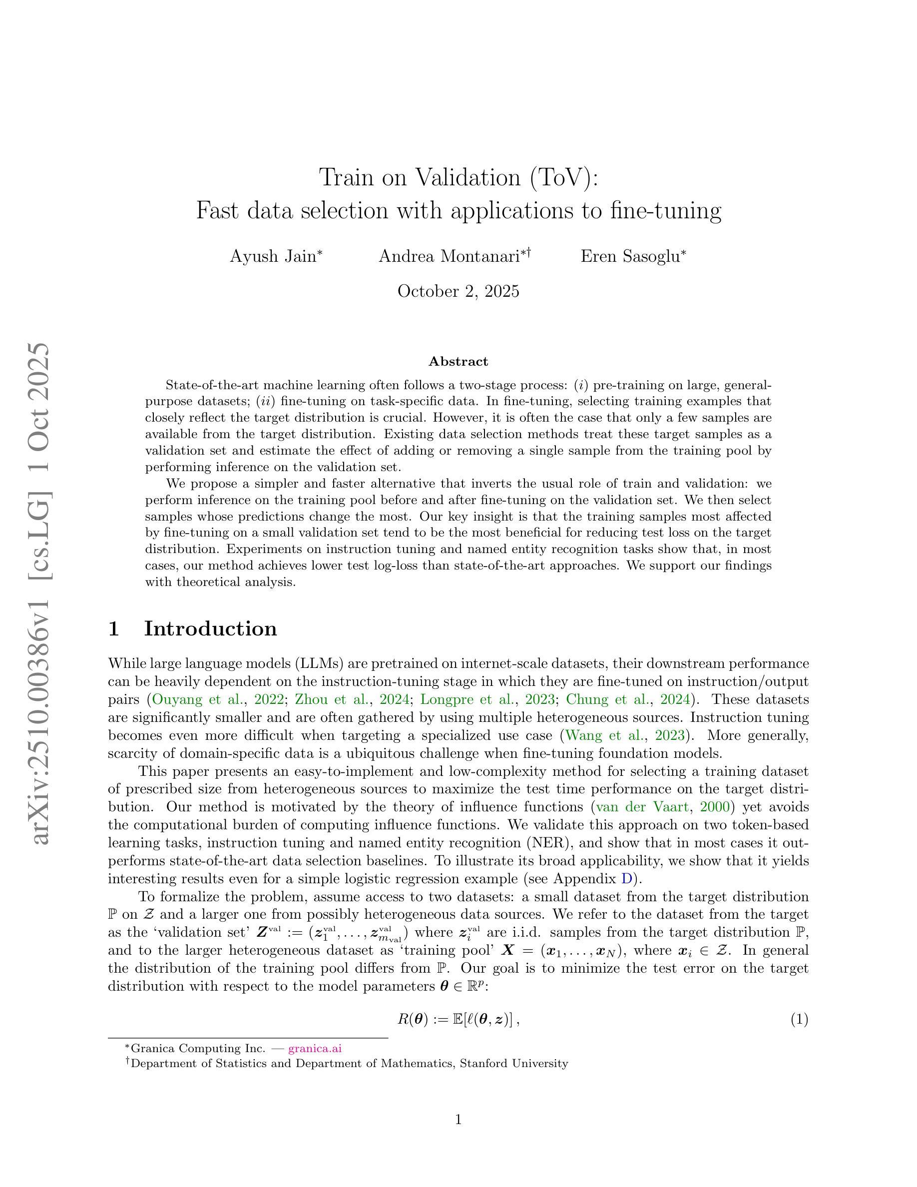 - 机器学习通常包含预训练和微调两个阶段。微调阶段选择反映目标分布的样本至关重要。