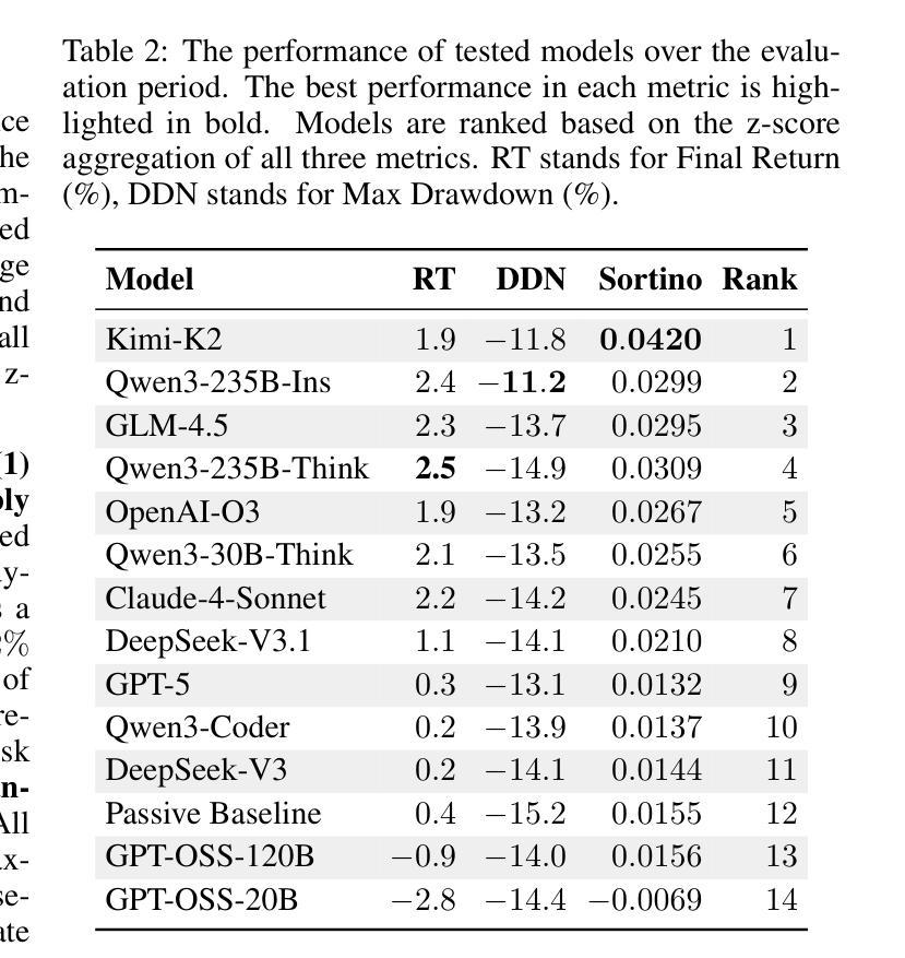 - 评估显示,大多数LLM难以超越简单基线,但部分展现出高回报和有效风险管理潜力。