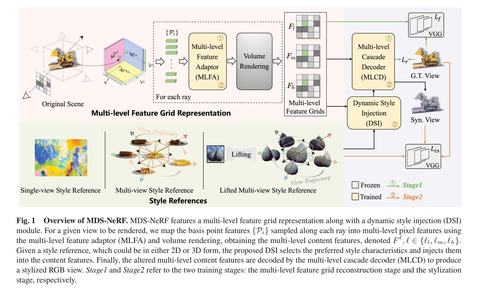 - MDS-NeRF方法针对NeRF进行专门设计,用于实现风格化,并重新设计了NeRF管道。