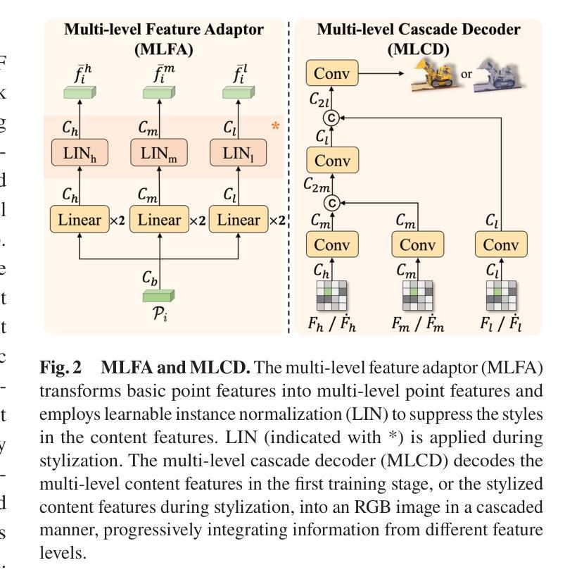 随着神经辐射场(NeRF)在各种3D视觉任务中的应用不断扩大,已经开发了许多基于NeRF的风格转移技术。然而,现有方法通常将风格统计信息集成到原始NeRF管道中,这往往导致在内容保留和艺术风格化方面的结果都不尽如人意。在本文中,我们介绍了为NeRF设计的多层次动态风格转移(MDS-NeRF)这一新方法,它重新设计了专门用于风格化的NeRF管道,并加入了一个创新的动态风格注入模块。特别是,我们提出了一种多层次特征适配器,有助于从内容辐射场生成多层次特征网格表示,有效捕获场景的多尺度空间结构。此外,我们提出了一种动态风格注入模块,学习提取相关的风格特征并自适应地将其集成到内容模式中。然后,将风格化的多层次特征通过我们提出的多层次级联解码器转换为最终的风格化视图。此外,我们将我们的3D风格转移方法扩展到支持使用3D风格参考的全视角风格转移。大量实验表明,MDS-NeRF在3D风格转移方面取得了卓越的性能,能够保留多尺度空间结构,同时有效地转移风格特征。