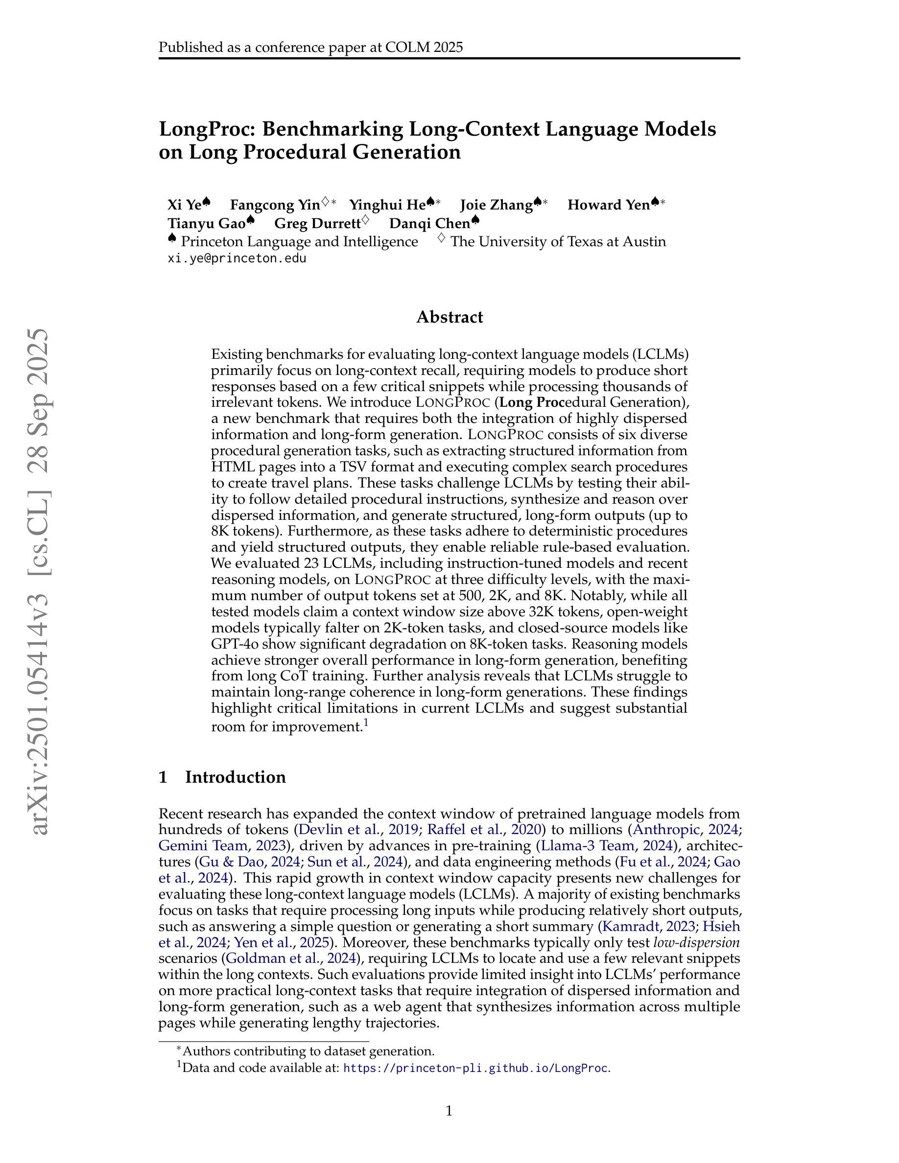 PDF COLM 2025. Data and code available at: https://princeton-pli.github.io/LongProc