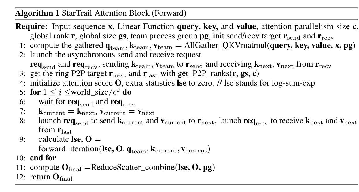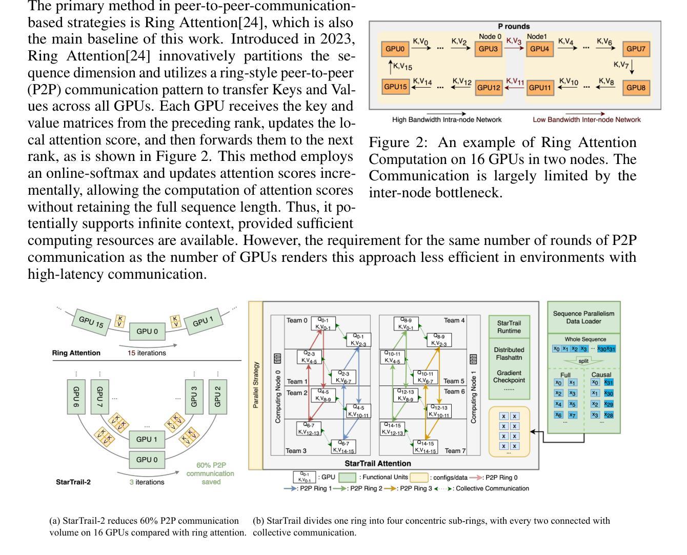 - StarTrail引入额外的并行维度,将点对点通信划分为子环来减少通信量和避免带宽瓶颈。