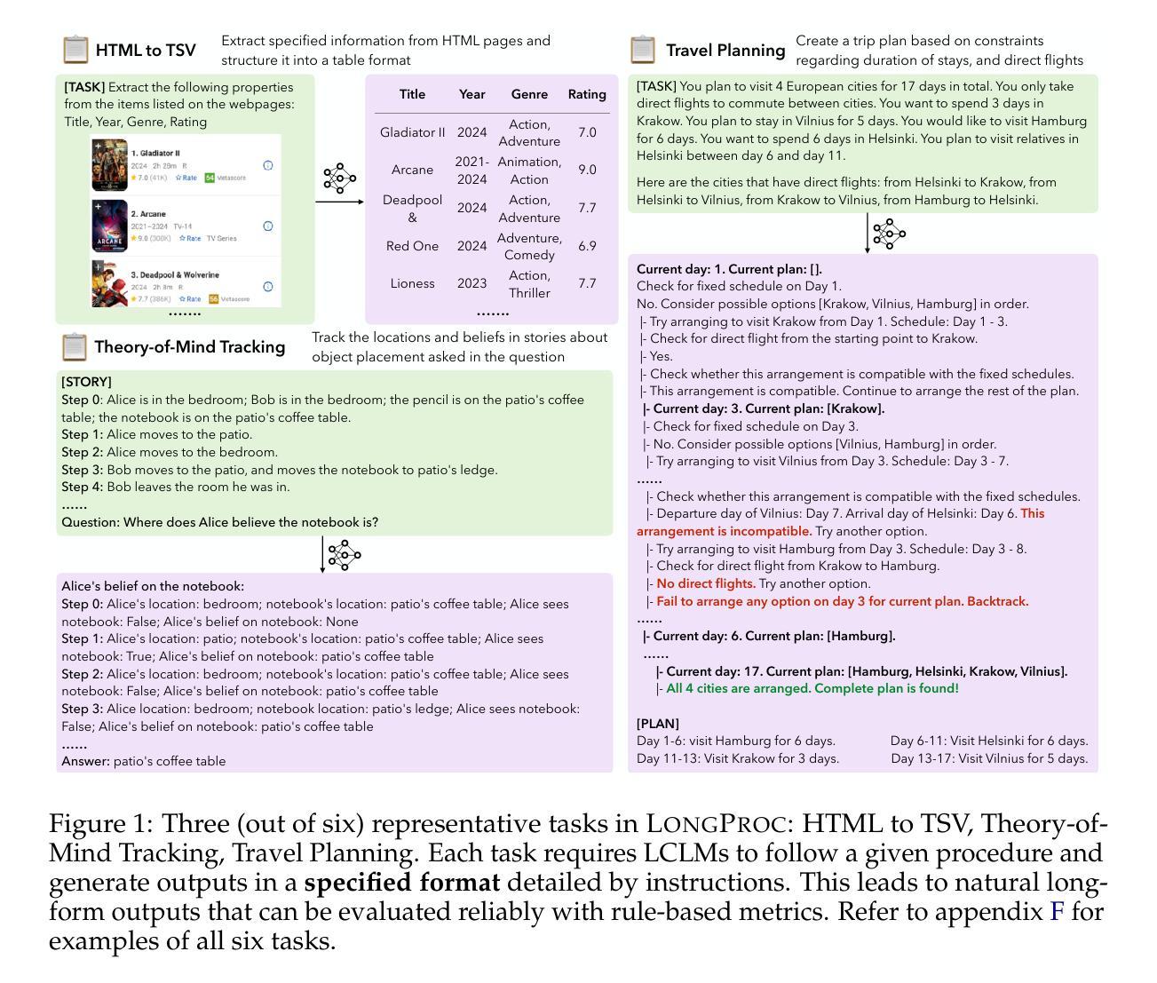 - 引入LongProc作为评估长语境语言模型(LCLM)的新基准测试,涵盖六个不同的过程生成任务。