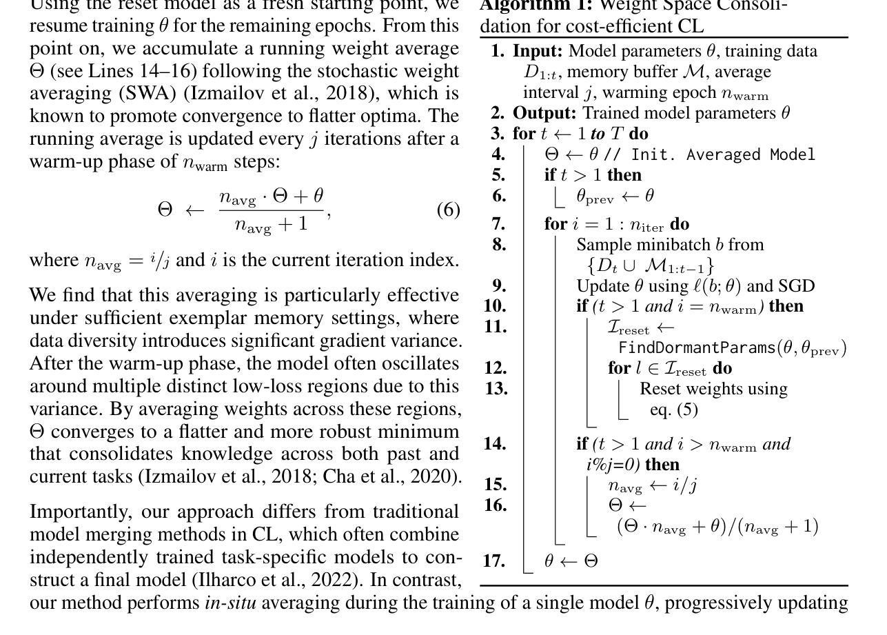 - 为了解决稳定性和可塑性之间的权衡问题,本文提出了Weight Space Consolidation方法,结合了基于排名的参数重置和权重平均技术。